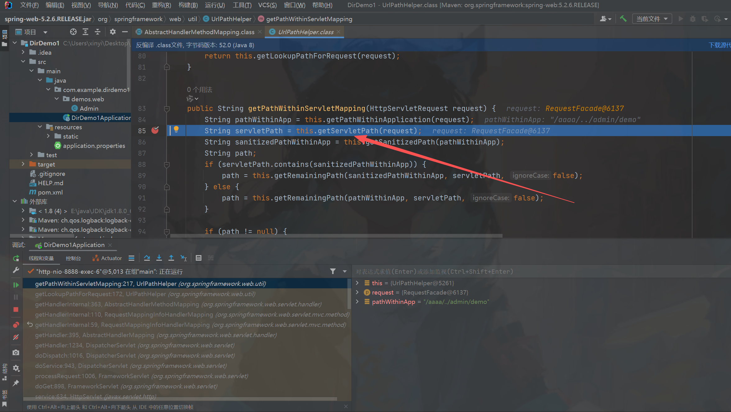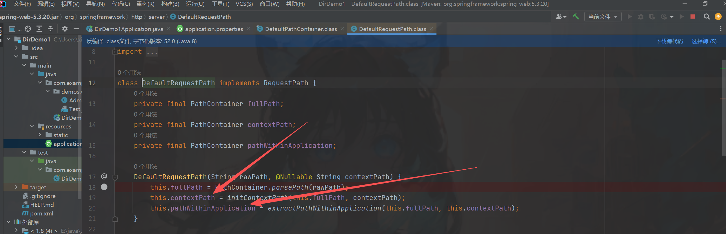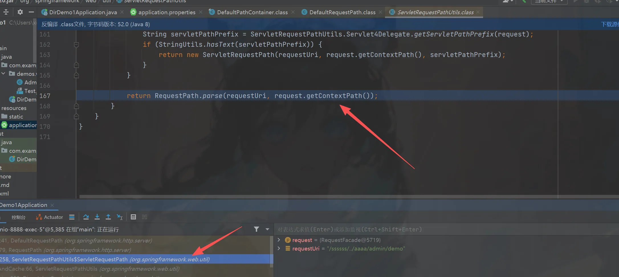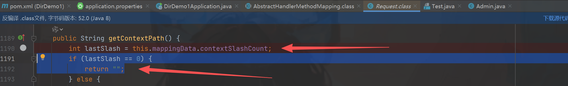 这里我们直接看getRemainingPath方法代码一,其中会返回我们的请求路径,但是并不包含上下文路径