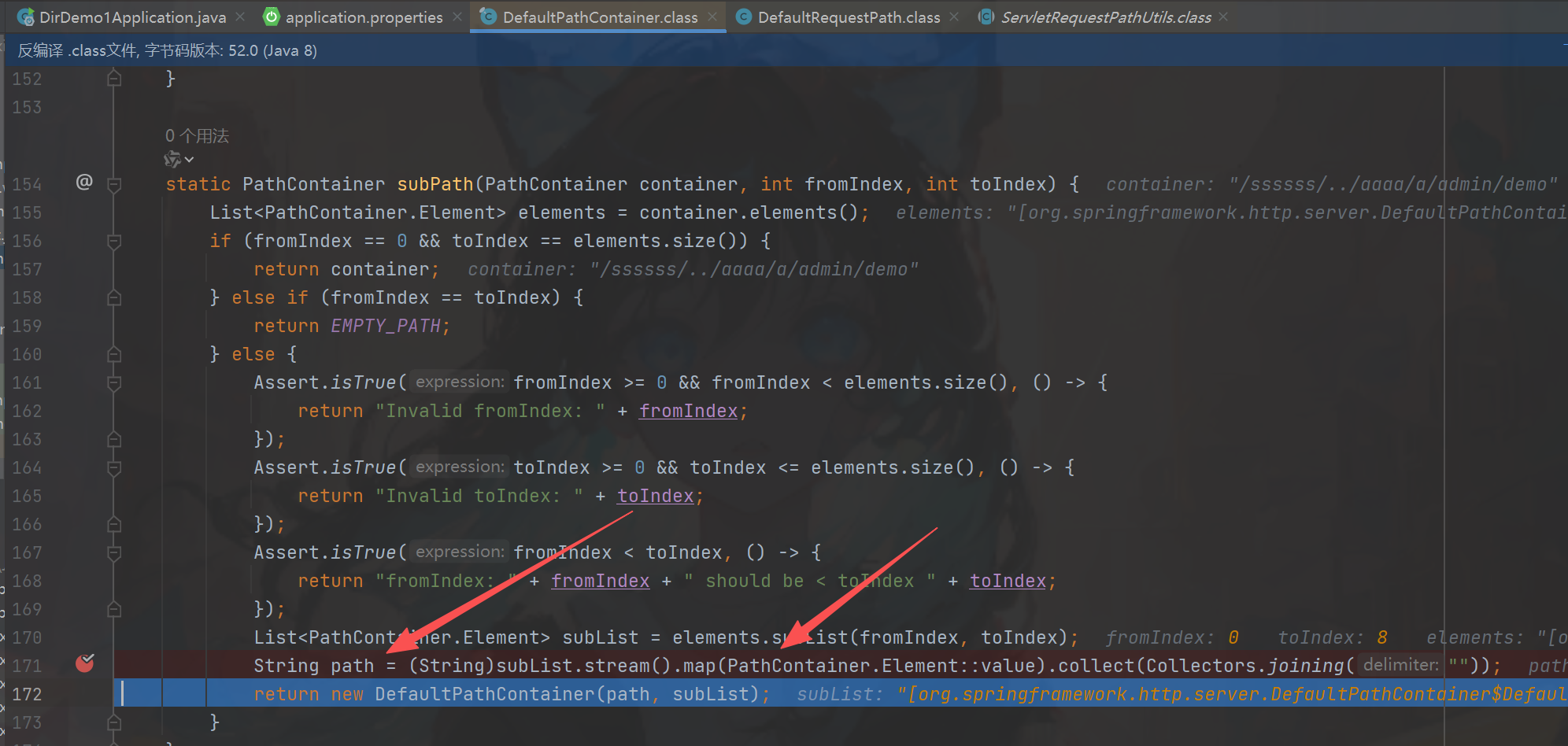 上面我们得知了因为修复导致我们并没有走到else分支,那么我们进去看看getPathWithinApplication方法