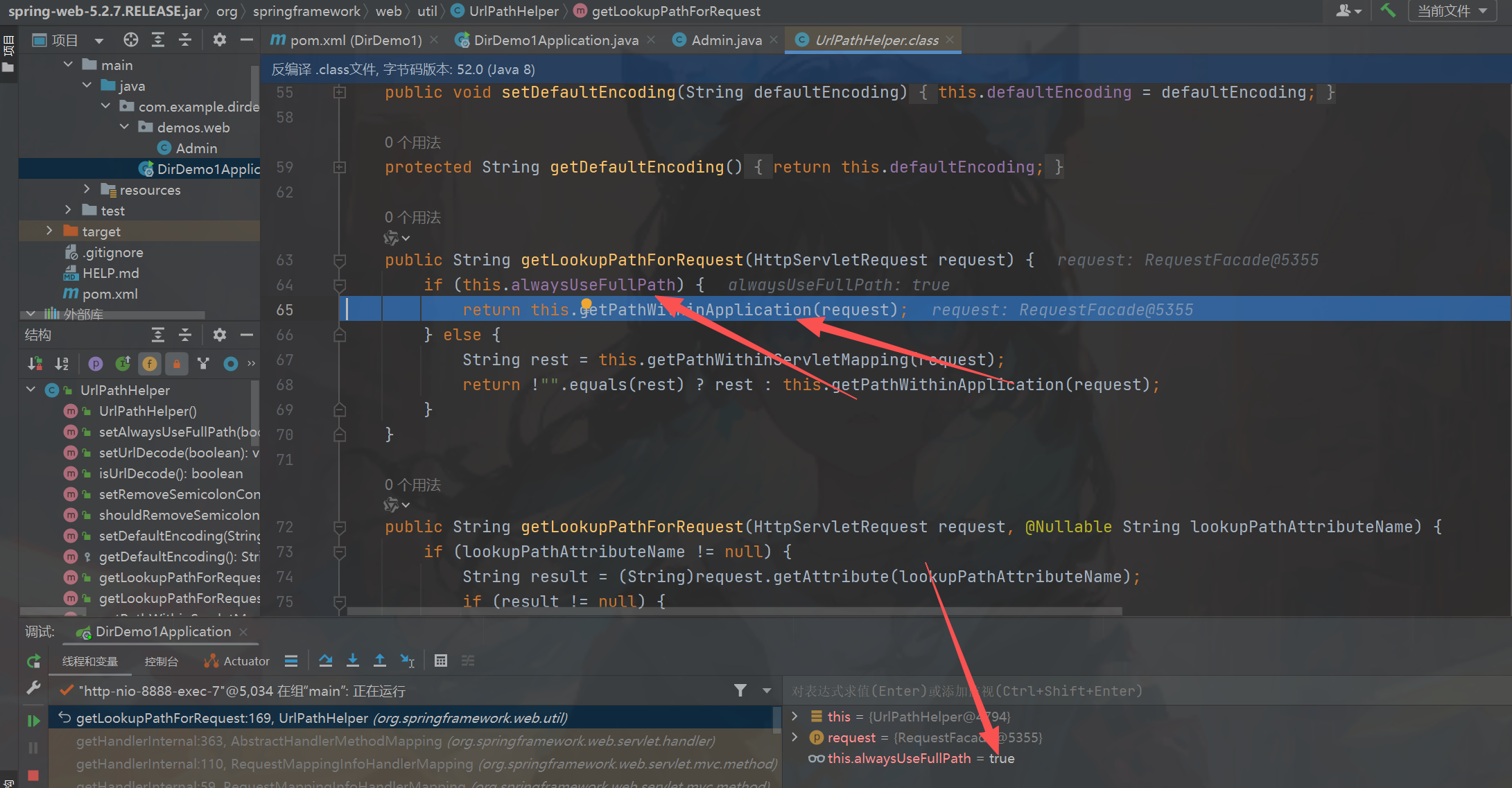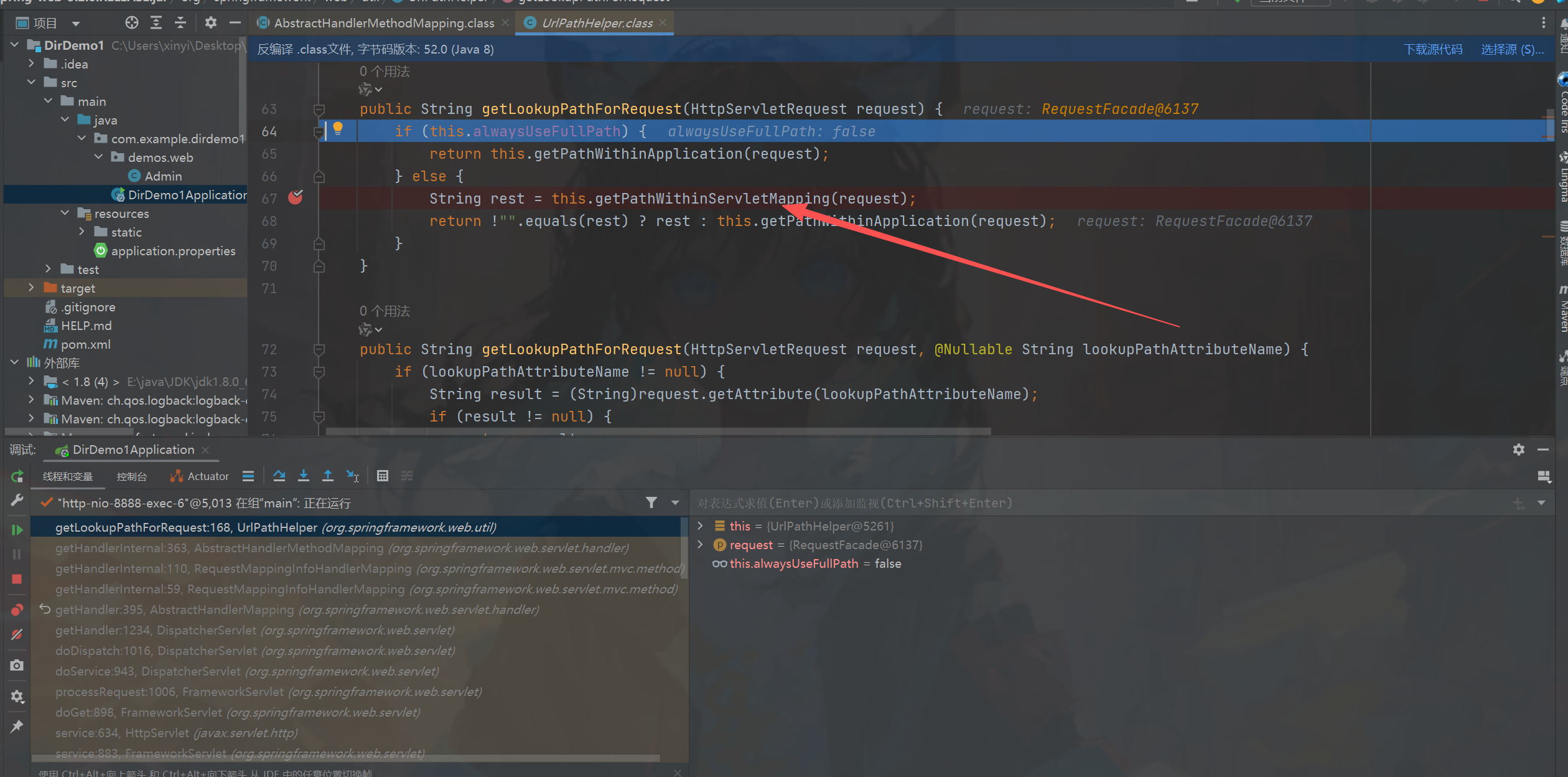 其实很简单在上面图getLookupPathForRequest方法alwaysUseFullPath属性在老版本中是false,在2.3.1中之后在启动项目的时候