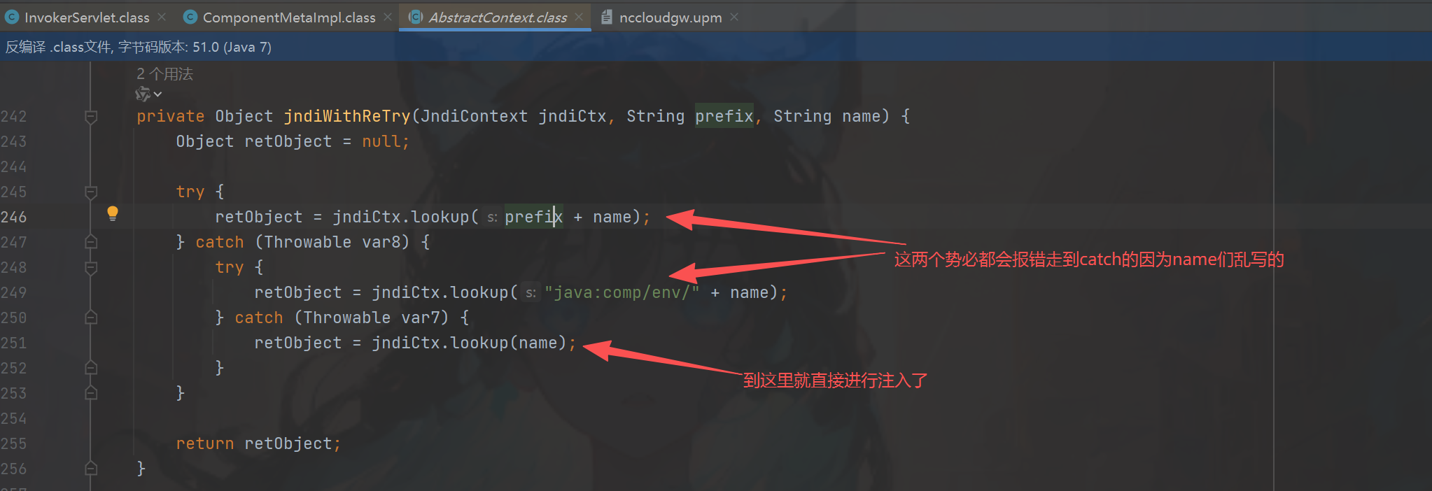 jndiwithReTry方法图二,到这里其实就行了要是在往下走就真的到底层jndi注入了可以看图三