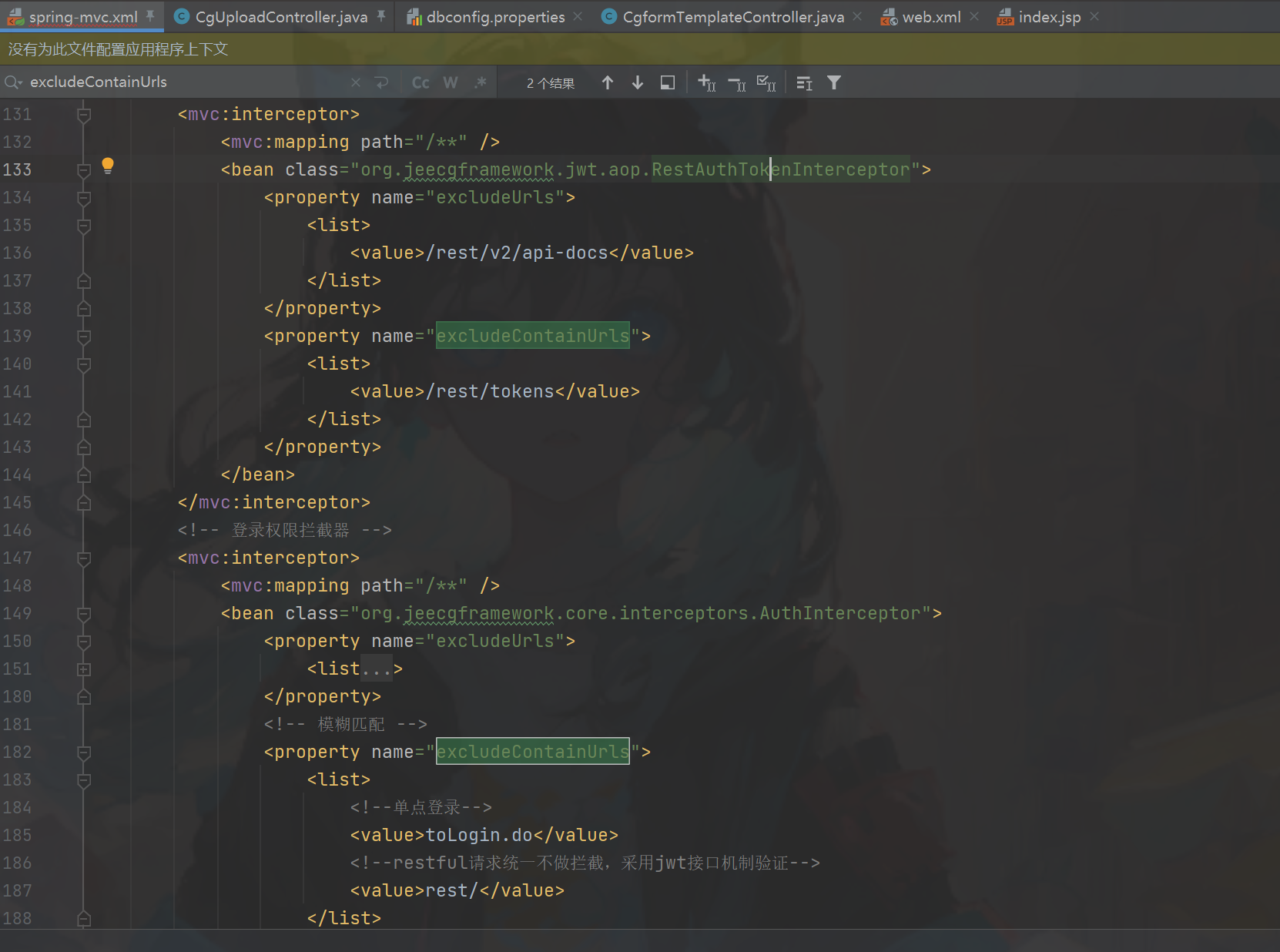 看到存在两个先进入第一个org.jeecgframework.jwt.aop.RestAuthTokenInterceptor。