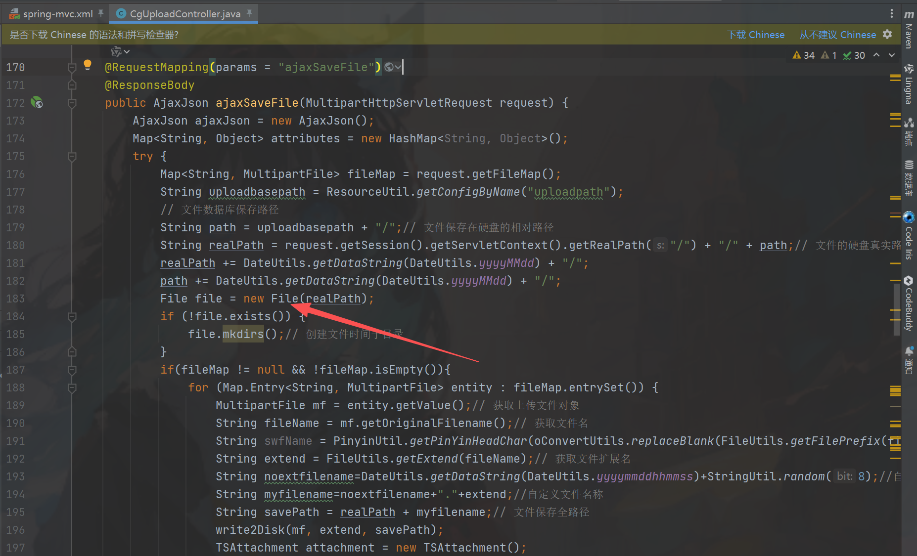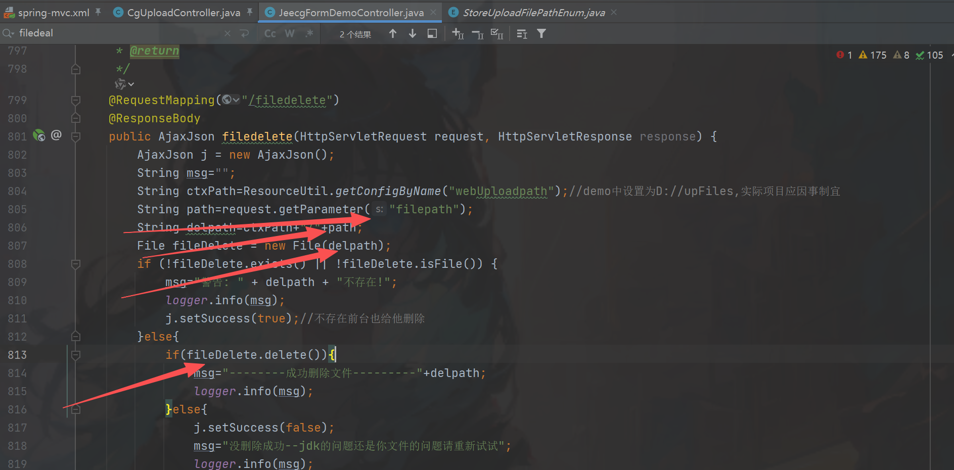那么我是如何知道的呢?关于文件操作的操作开源直接使用idea进行全局搜索 new File(就可以了图一,那么176行就是获取所有的上传文件参数存储在Map中,