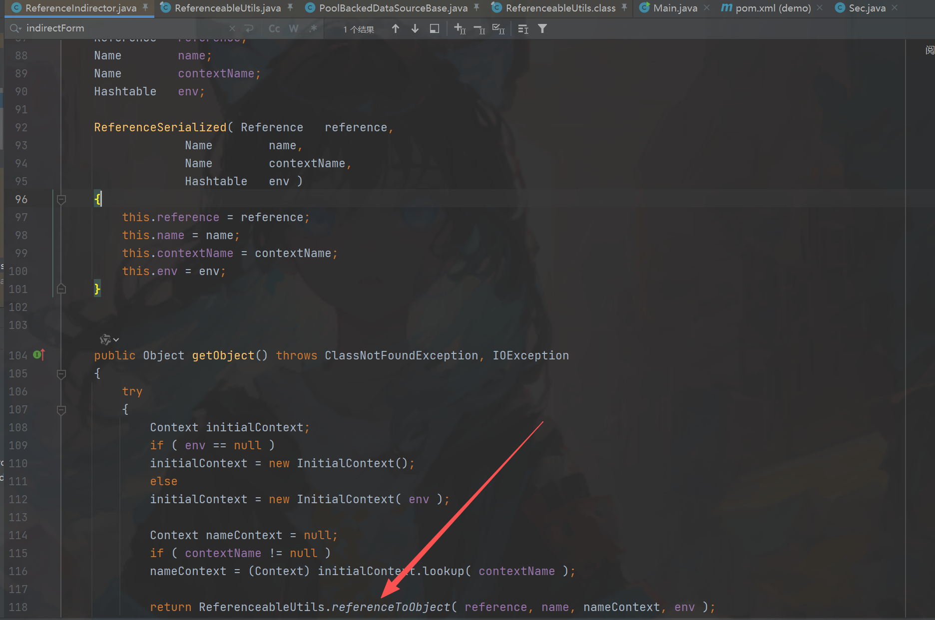 IndirectlySerialized,这里找到了ReferenceIndirector$ReferenceSerialized#getObject图二,接着进入