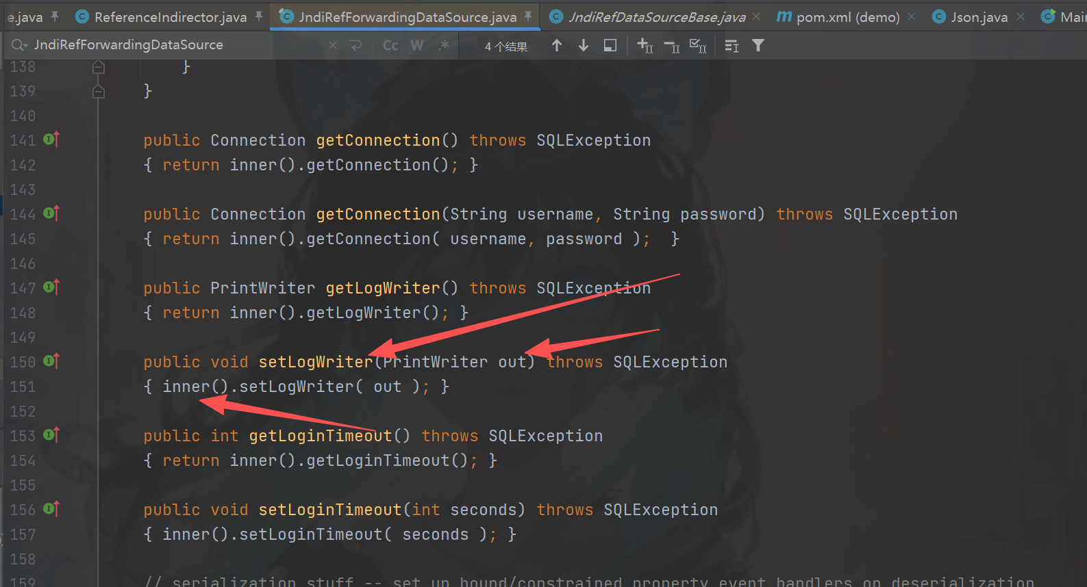 这里我看了其他师傅的文章在fastjson反序列化的时候通过Setter进行触发了,没错确实setLogWriter可以调用但是都多余,