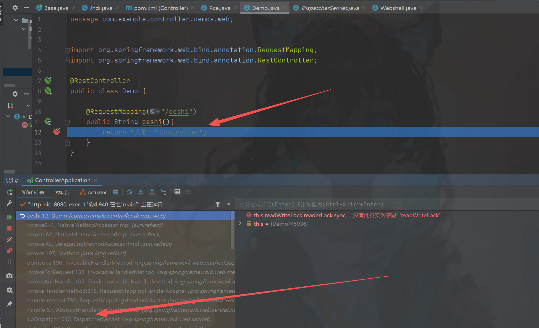 来说是动态语言对于php来说是脚本语言所以出现了内存马的说法,那我们就一步一步看看需要修改什么,创建一个Controller文件下一个断点,