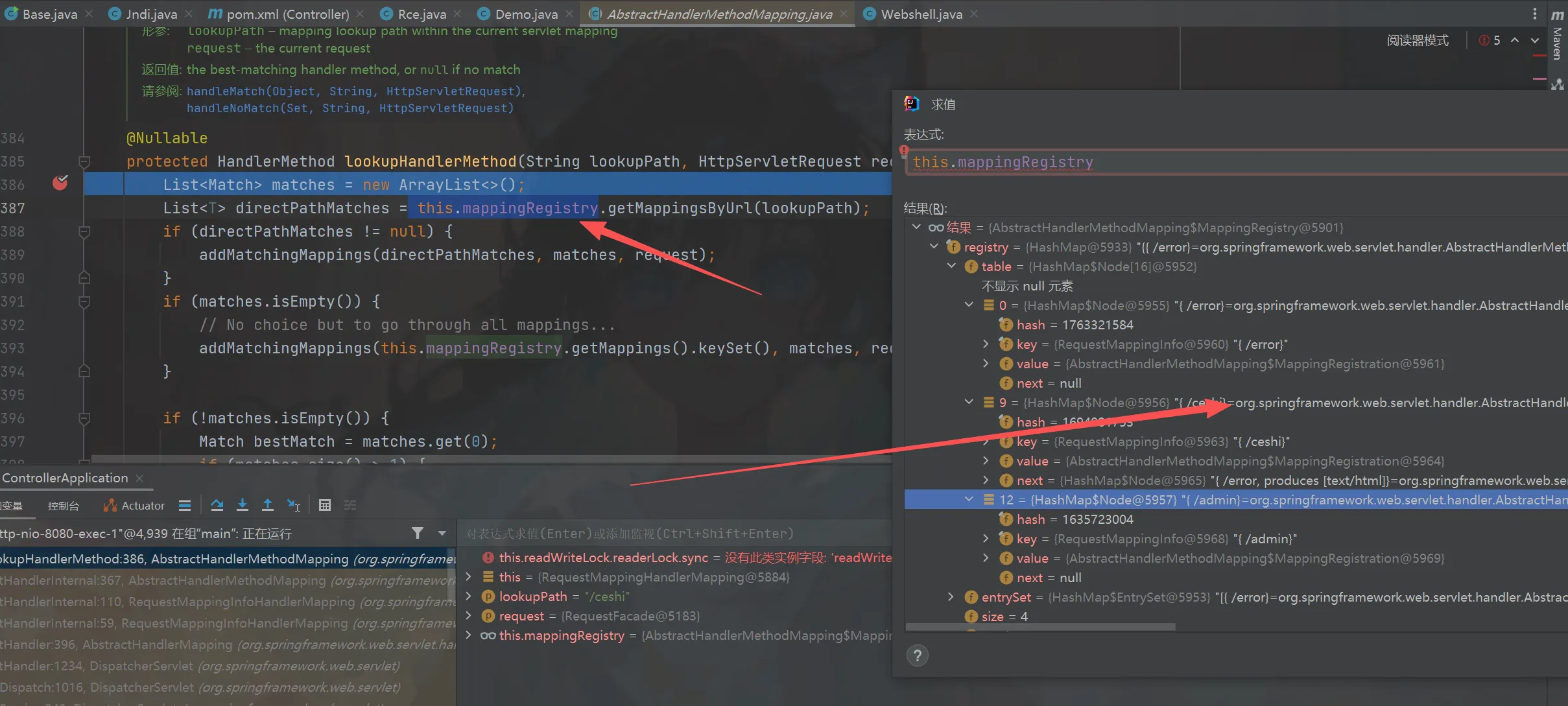 之后进入之后找到了我们需要修改的属性this.mappingRegistry,那么如何获取他,在之前的时候this.handlerMappings属性